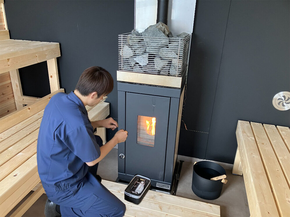 木質ペレットストーブで温めたサウナと 支笏湖の水を使ったセルフロウリュウ。 ここでしか味わえない特別な時間をお楽しみください。